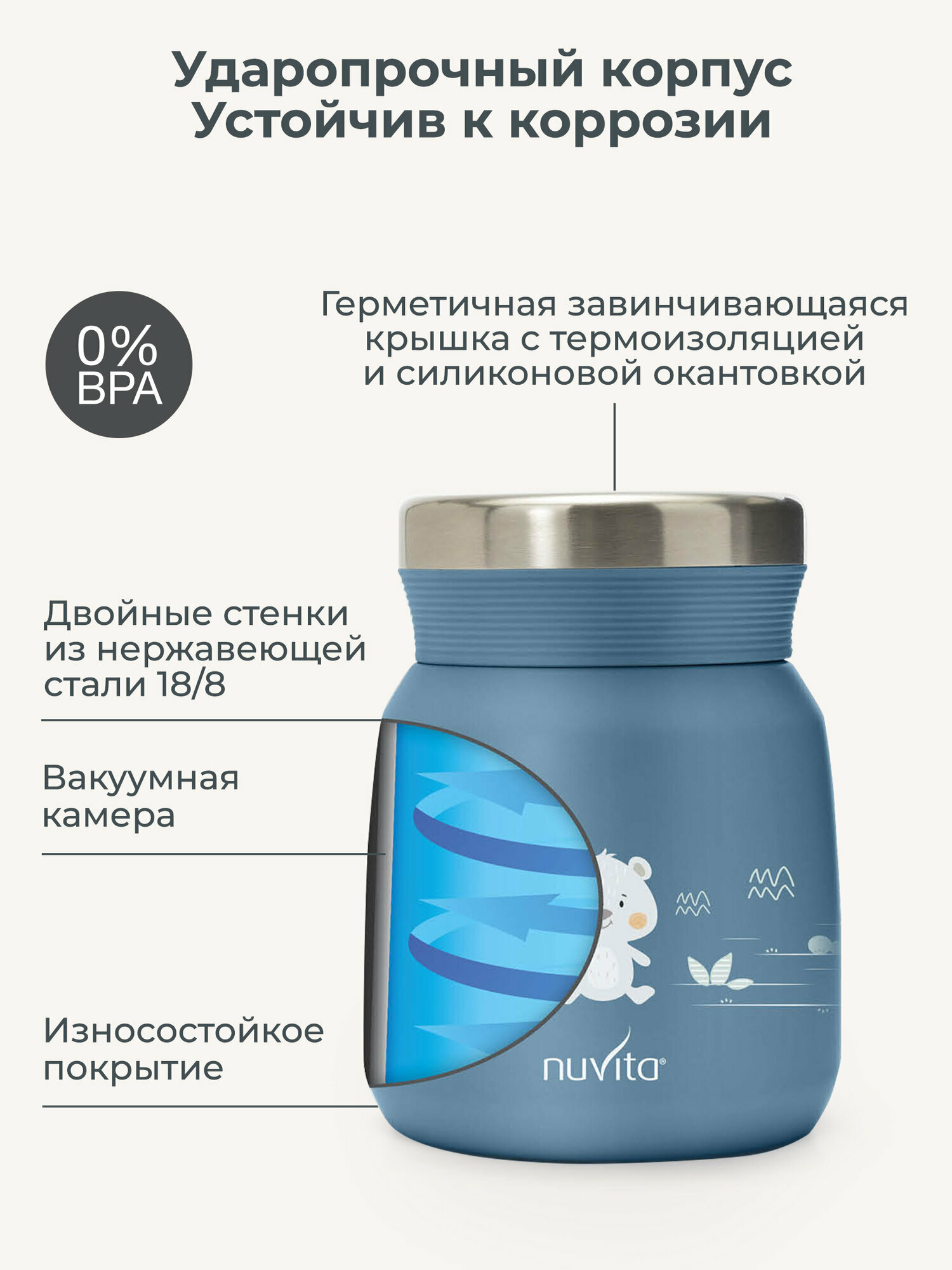 Купить Термос детский для еды и жидкостей Nuvita с широким горлом, маленький, 300 мл, синий с доставкой по всей России.