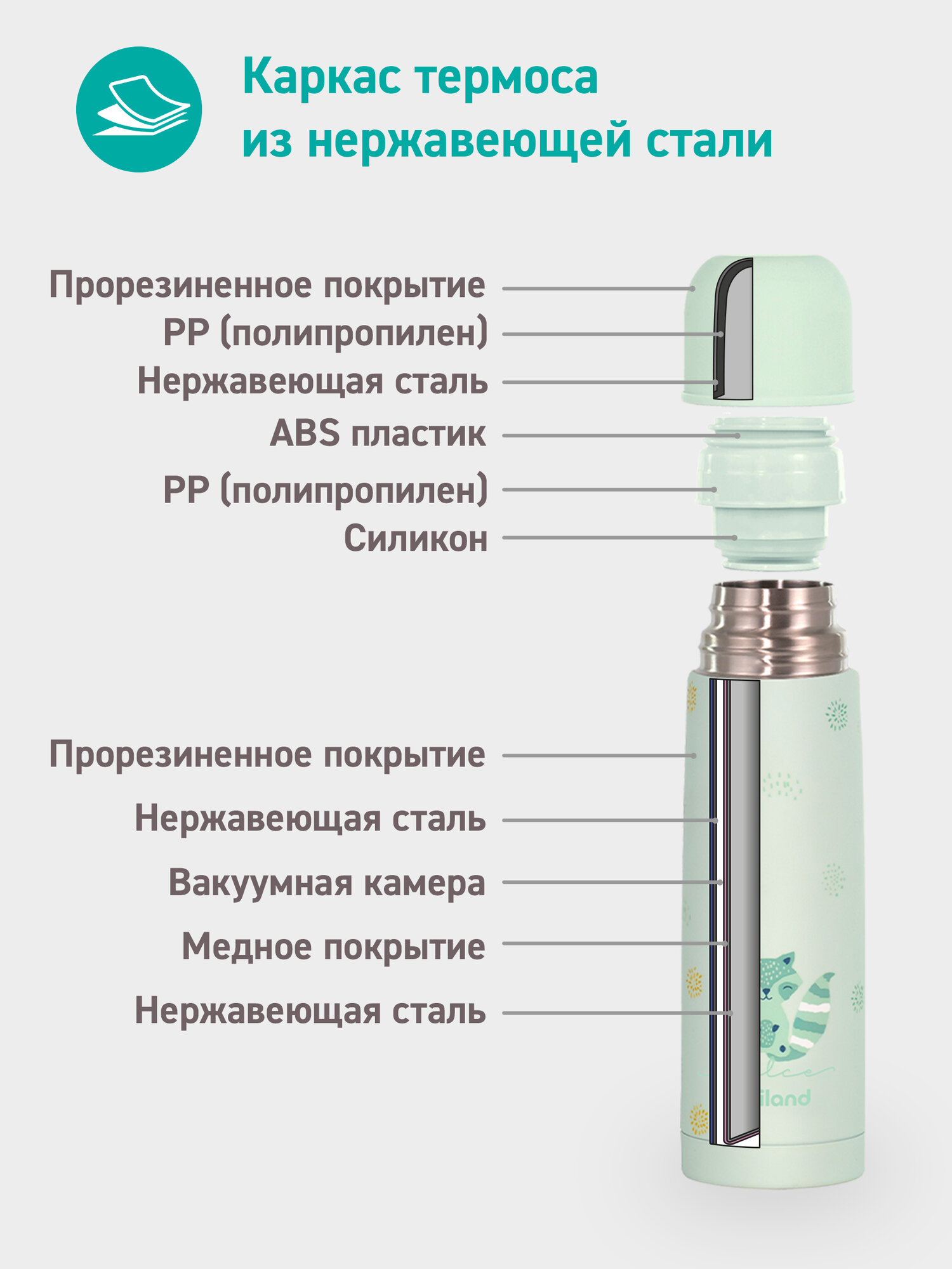 Купить Термос детский для воды, чая и других напитков Miniland Thermy Dolce, бирюзовый с енотом, 500 мл с доставкой по всей России.