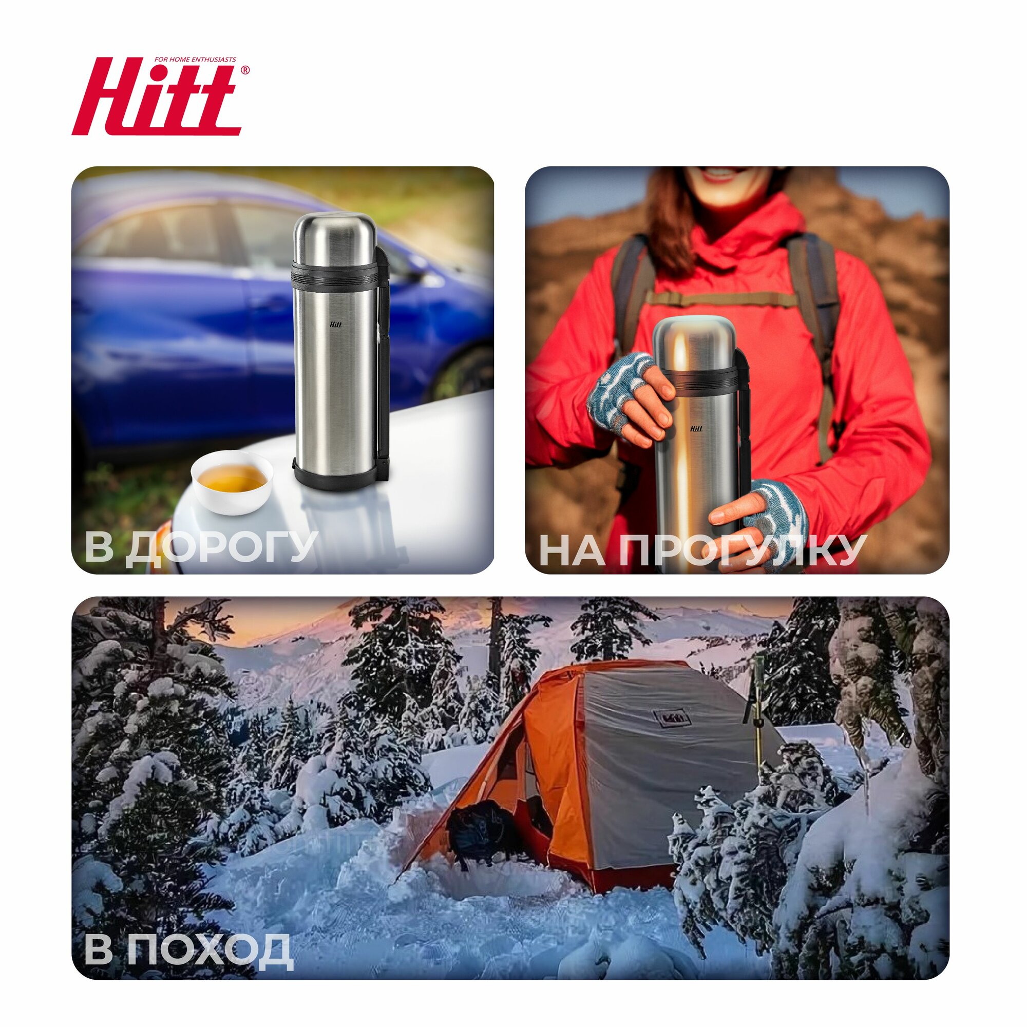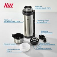 Термос Hitt Action со складной ручкой предназначен для активных и динамичных пользователей, кому важно, чтобы любимый напиток был всегда под рукой. Термос для чая рассчитан на объем 1.8 литра. Термос подходит для приготовления чая, кофе, отваров из трав. Термос для чая 1.8 литра удобный, эргономичный, его можно использовать где угодно: можно взять с собой на природу, охоту или рыбалку, в поход или в командировку. Преимущества • Термос 1 литр имеет на корпусе складную ручку и специальный ремешок для переноски, что значительно облегчает переноску и использование изделия в любых ситуациях. Это особенно важно, когда вы находитесь в движении или в нестабильных условиях. • Корпус термоса выполнен из нержавеющей стали, имеет конструкцию двойных стенок, обеспечивающих вакуумную термоизоляцию. Термос для кофе сохраняет температуру напитков. • Инновационный клапан на пробке термоса обеспечивает полную герметичность и предотвращает утечку. Ваш напиток останется теплым и свежим, готовым к наслаждению в любой момент. • Термос 1.8 литра оснащен герметичной крышкой с завинчивающейся пробкой, держит температуру до 20 часов. Практичная крышка используется как чашка для питья. Вакуумная колба из высококачественной нержавеющей стали защищает содержимое от внешних воздействий. • Металлическая колба продлевает срок службы термопосуды. Специальная конструкция термоса экономит место в рюкзаке или сумке за счет крышки, которая используется в качестве кружки. Термос для кофе обладает абсолютной герметичностью без утечек и капель. Такая термопосуда – отличная экологическая альтернатива пластиковым бутылкам и бумажным стаканчикам. Hitt предлагает вашему вниманию разные термосы для чая и для кофе: с ручкой, с силиконовым кольцом на корпусе и с разным литражом.