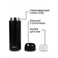 Купить Термос MIKU для заваривания чая с ситечком 0,5 литра (Черный) с доставкой по всей России. Термос MIKU для заваривания чая с ситечком 0,5 литра (Черный): сравнение цен, характеристики, фото, актуальное наличие и цены.
