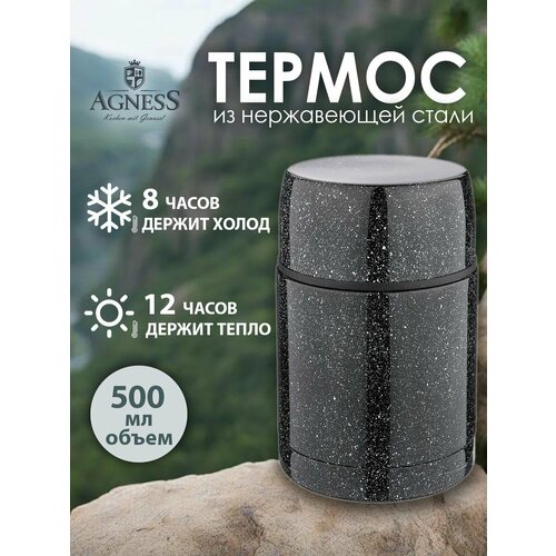 Купить Термос для еды Agness 910-105/106, 0.5 л черный 8 см 0.5 л 1 шт. с доставкой по всей России.