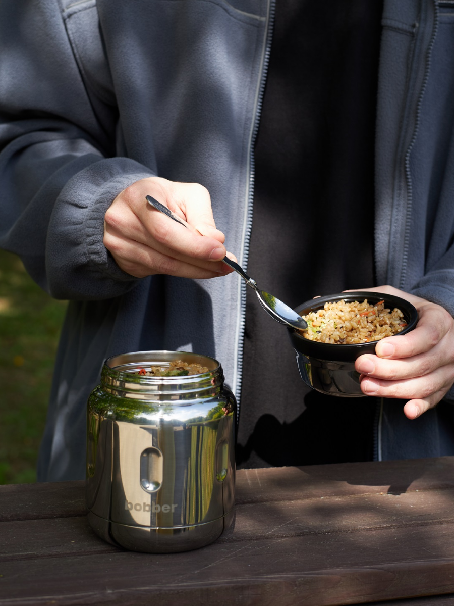 Jerrycan — это термос для еды с удобным широким горлом и встроенной складной ложкой. Термос объемом 470 мл сохраняет тепло до 10 часов, холод - до 15 часов.