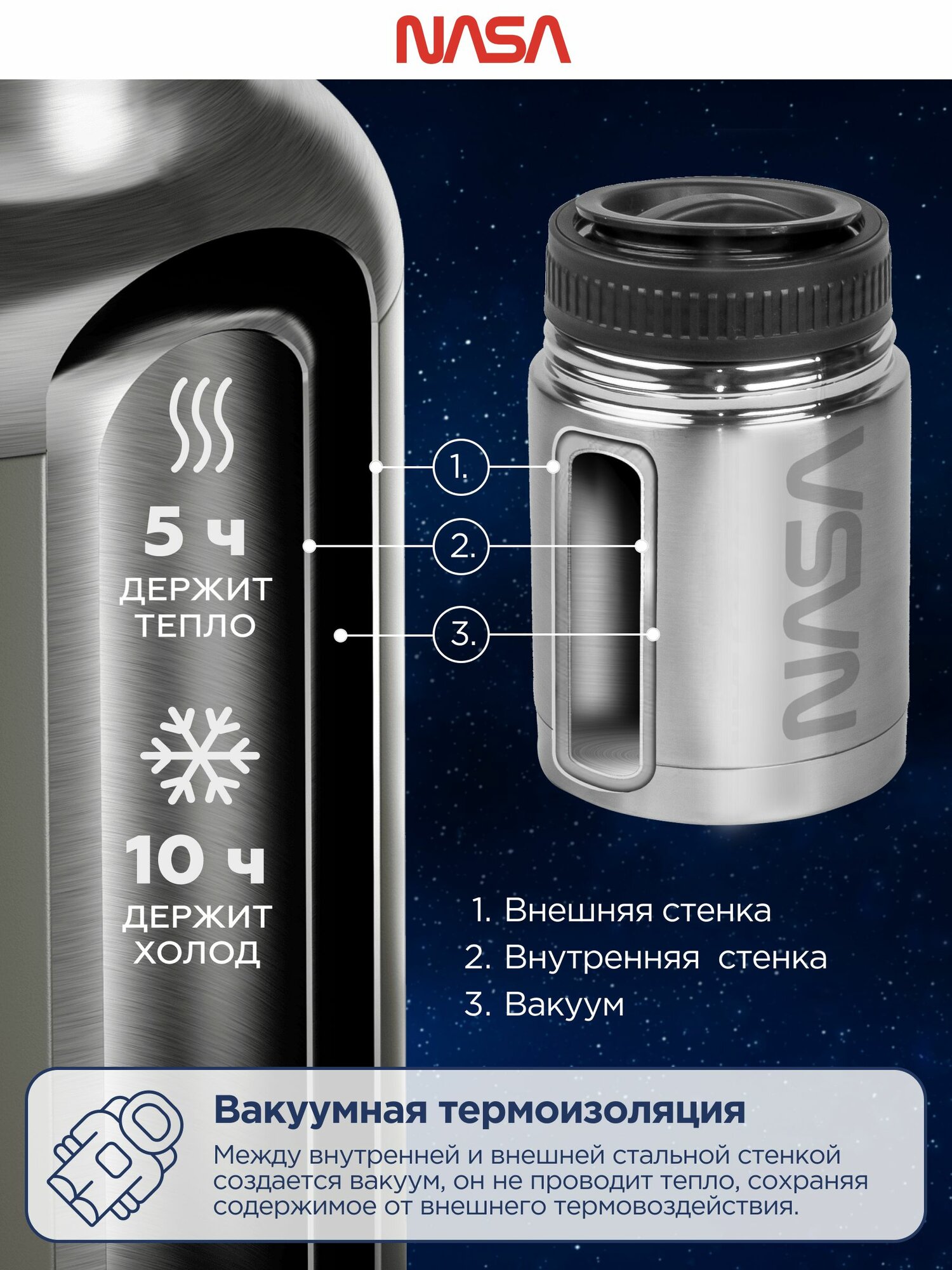 Купить Термос для еды NASA с широким горлом и ложкой 0,5 л с доставкой по всей России. Термос для еды NASA с широким горлом и ложкой 0,5 л: сравнение цен, характеристики, фото, актуальное наличие и цены.