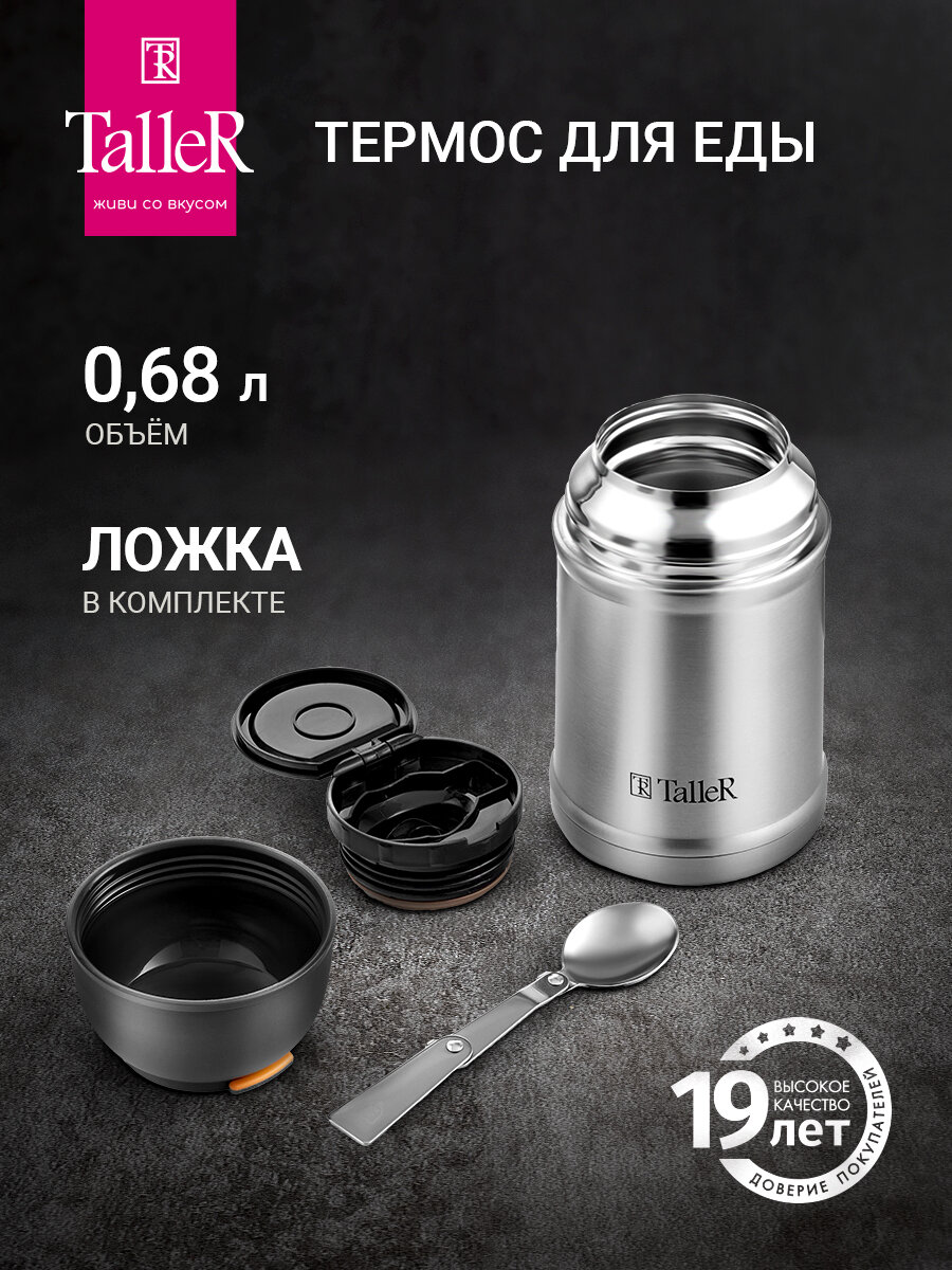 Купить Термос для еды TalleR TR-22433, 0.68 л, нержавеющая сталь, с широким горлом с доставкой по всей России.