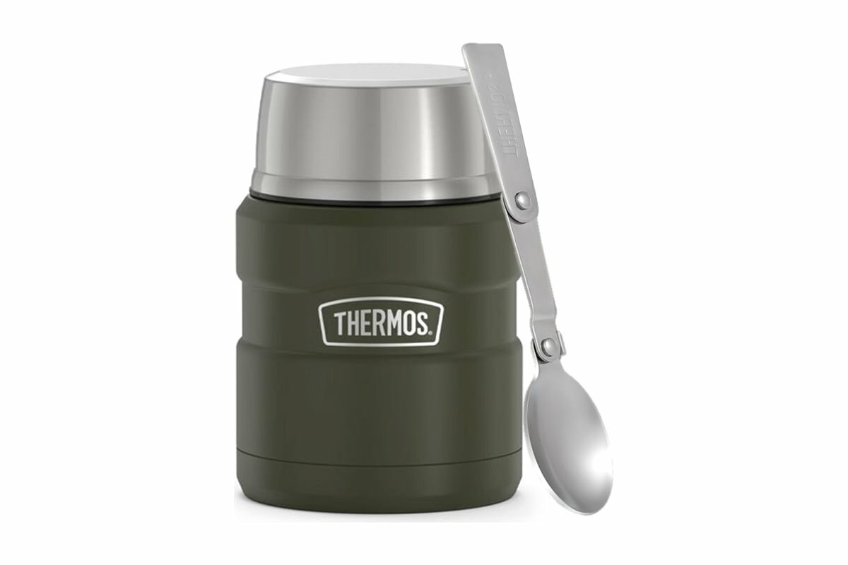 Термос для еды Thermos с ложкой SK3000 MAG (0,47 литра), хаки - лучший вариант для полноценного обеда вне дома, для автопутешествий, походов на пикник, рыбалки или охоты – любое блюдо сохранится в нём горячим не менее 9 часов или холодным и свежим в течение 14 часов. Превосходное качество термоса KING SK-3000 обеспечивается за счёт материалов премиум класса и инновационных технологий компании THERMOS, специализирующейся на производстве изотермической продукции с 1904 г.