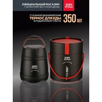 Термос для еды и супа с широким горлом, универсальный ланч-бокс с ложечкой в комплекте. Туристическая походная посуда 0,35 литра в подарочном тубусе.