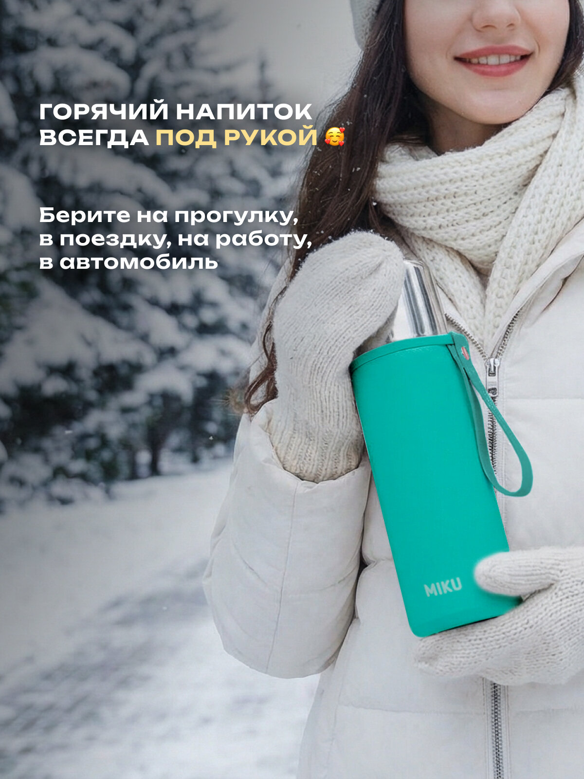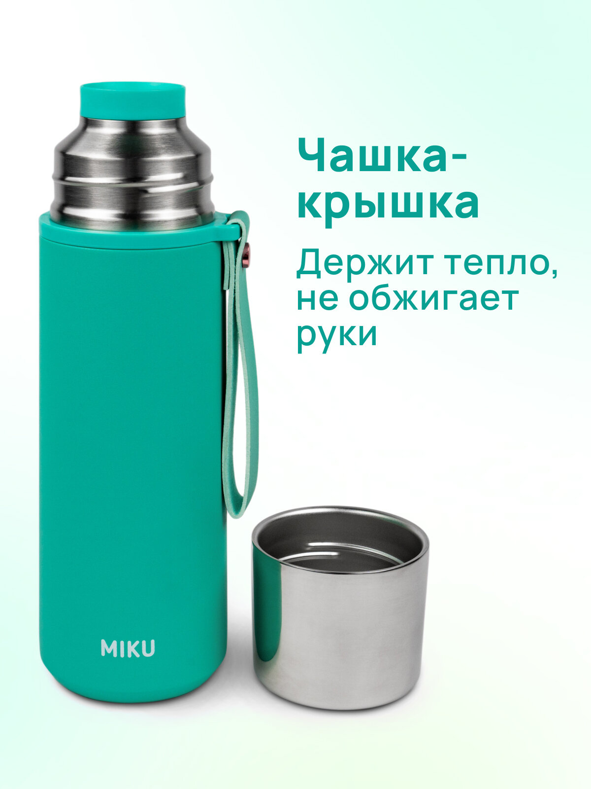 Термос MIKU объемом 1 л сохраняет температуру горячих и холодных напитков до 24 часов. Станет отличным подарком и для мужчин, и для женщин благодаря универсальным цветам моделей. Маленький термос удобно брать на прогулку и в дорогу, а нести в руках легко с помощью ремешка из мягкой экокожи.