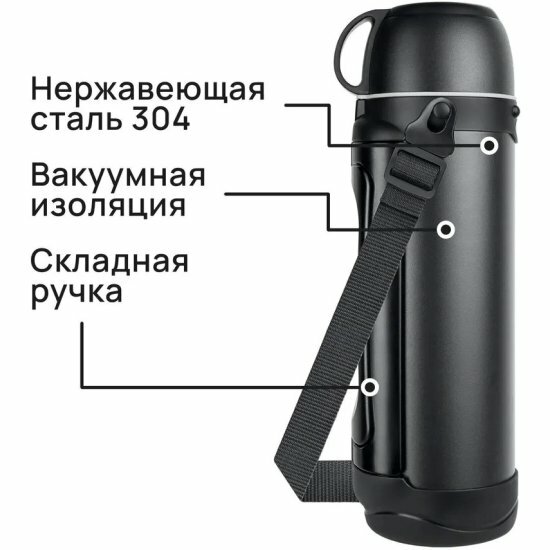 Благодаря специальной форме ручек, даже полный термос удобно держать на весу. Когда ручки не нужны, они легко складываются внутрь корпуса. В походе термос можно повесить на плечо — для этого есть съемный ремешок регулируемой длины.