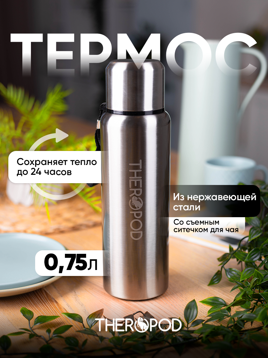 Купить Термос для напитков THEROPOD TP-10 0.75L, нержавеющая сталь, крышка-чашка, пробка винтовая, ситечко, сталь с доставкой по всей России. Термос для напитков THEROPOD TP-10 0.75L, нержавеющая сталь, крышка-чашка, пробка винтовая, ситечко, сталь: сравнение цен, характеристики, фото, актуальное наличие и цены.