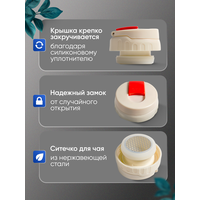 кнопка-клапан, крышка-чашка, ремень для переноски, ручка на корпусе, с ситечком, силиконовая вставка на корпусе