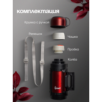 кнопка-клапан, крышка-чашка, ремень для переноски, ручка на корпусе, с ситечком, силиконовая вставка на корпусе