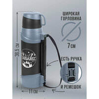 Купить Термос классический, нержавеющая сталь 2 л, черно-серый, 2 кружки, ручка + ремешок, Taigaru (Тайгару), 608818 с доставкой по всей России.