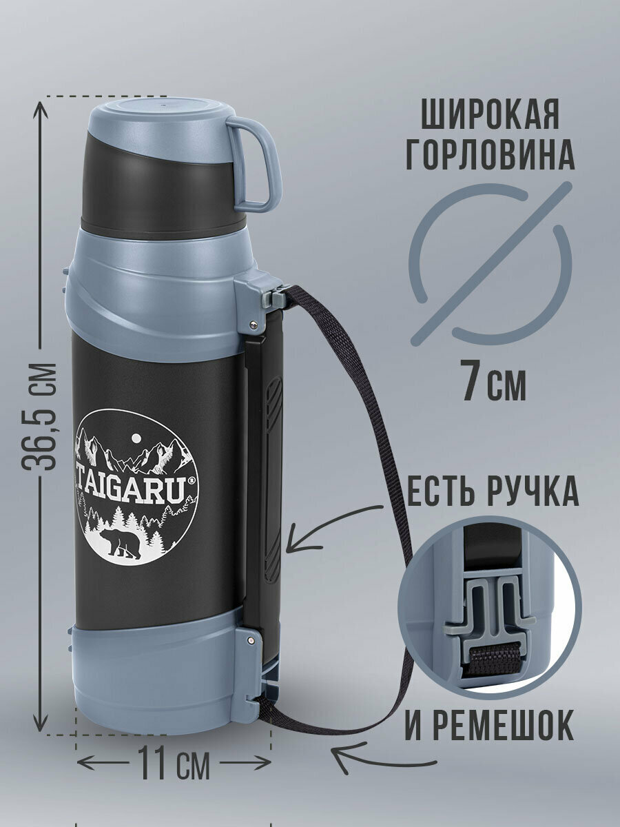 Термос классический, нержавеющая сталь 2 л, черно-серый, 2 кружки, ручка + ремешок, Taigaru (Тайгару), 608818: сравнение цен, характеристики, фото, актуальное наличие и цены.