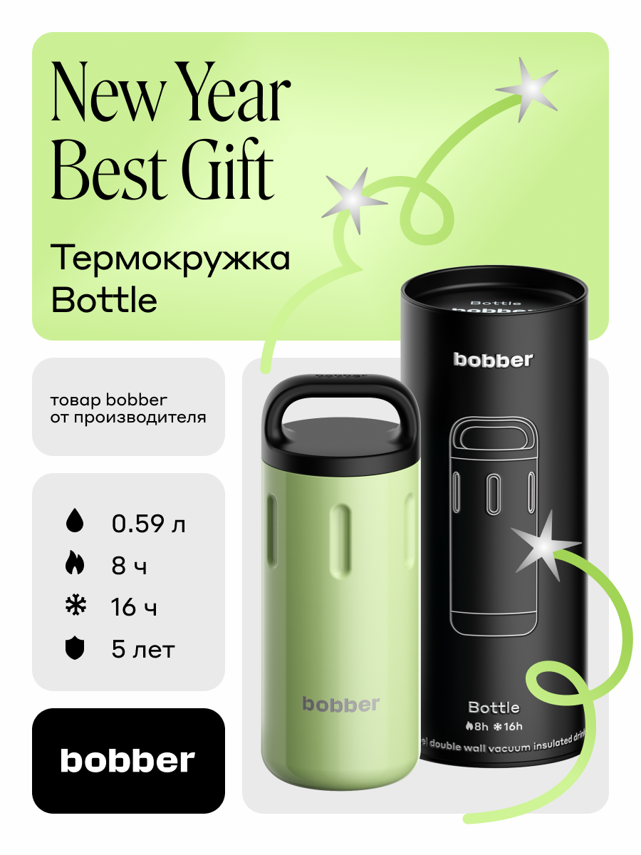 Bobber Bottle-590 мл - стильный и функциональный термос для еды с широким горлом и для горячих напитков с ручкой. Для кофе, чая, компота или других напитков. Термокружка 500 мл для еды (590 мл) имеет широкое горло, благодаря которому удобно хранить в нем лед или мороженное. Незаменим в офисе, на встречах, в поездках, чтобы горячая еда, в виде супа, каши, вторых блюд, были с собой. Используется как дорожная посуда для похода, для туризма, охоты или рыбалки. Имеет достаточную вместимость, чтобы удовлетворить вашу потребность в горячем напитке на протяжении 8 часов, а в холодном – 16 часов. Термос для воды или хранения детского питания в бутылочках. Станет незаменимым спутником на даче, на пляже, в походе, на пикнике, в спортзал, на прогулку. Термос мужской или женский для кофе и чая с ручкой Bobber Bottle также оснащен удобной крышкой с ручкой, которая обеспечивает удобство в поездках и путешествиях, которая из безопасного BPA free пластика имеет металлическое основание, что минимизирует контакт напитка с пластиком. Это гарантирует сохранение первоначальных вкуса и запаха напитка. 100% герметичность термокружки делает ее идеальной для использования в школе, офисе или во время путешествий - как походный. Она легко помещается в рюкзак или сумку и сохраняет температуру напитка в течение долгих часов. Можно использовать как детский термос для бутылочек и для детей и их мам. Термос с широким горлом (8,5) можно использовать для транспортировки детского питания. Металлический термос в подарочной упаковке. Отличный подарок на день рождения, день матери, выпускной, также детский термос в школу, на учебу, на прогулку, в дорогу. Выберите Bobber Bottle и позвольте себе наслаждаться своими любимыми горячими напитками в любое время и в любом месте! Термокружка из нержавеющей стали. Ищете идеальный подарок для мужчины или девушки? Подарок маме, подарок мужчине или папе, подарок для девочки, подарок подруге или бабушке, жене или девушке.