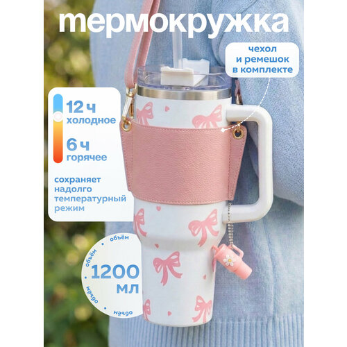 Термос-кружка "Бантики" - стильный и функциональный аксессуар для любителей горячих и холодных напитков. Бело-розовый дизайн с милыми бантиками делает его привлекательным и ярким.