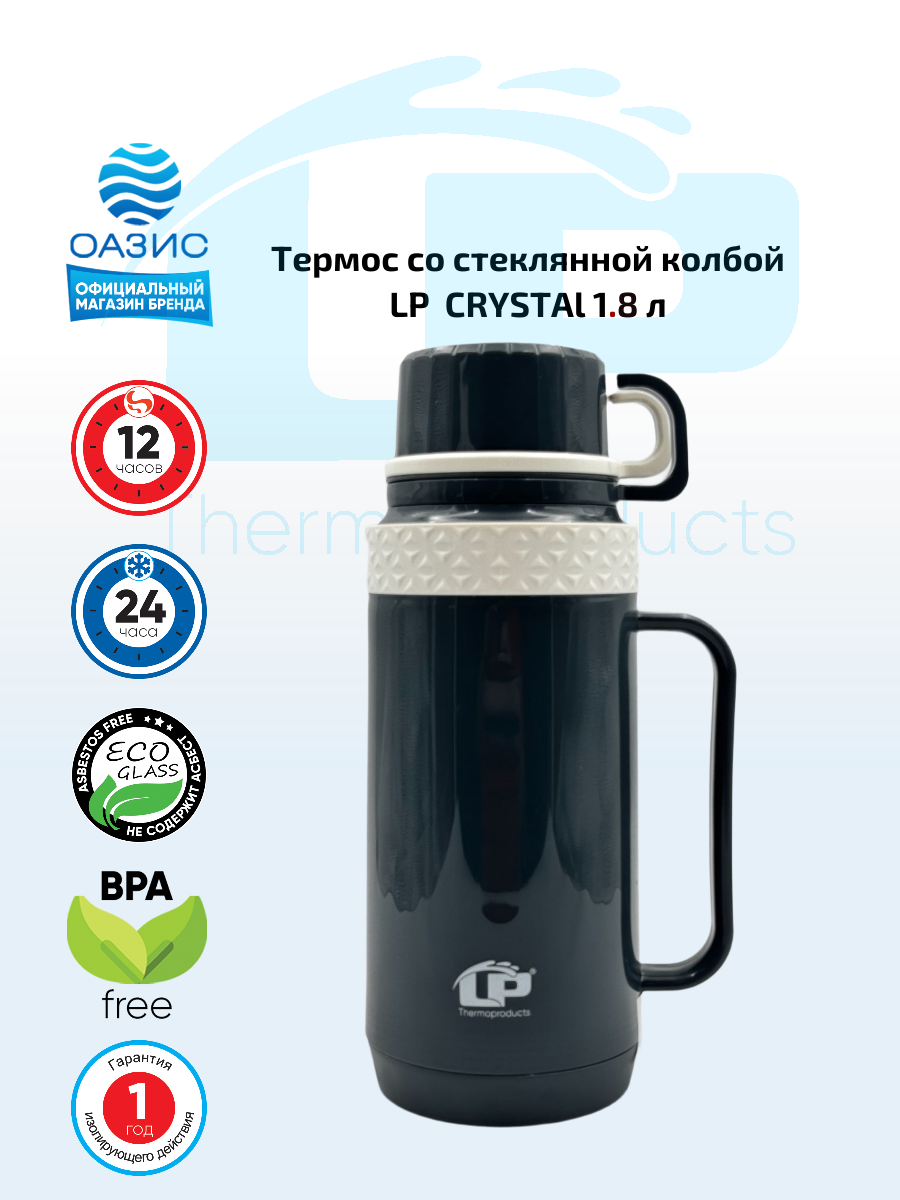 Термос LP CRYSTAL 1,8 л, для чая / кофе, со стеклянной колбой и с двумя чашками.: сравнение цен, характеристики, фото, актуальное наличие и цены.