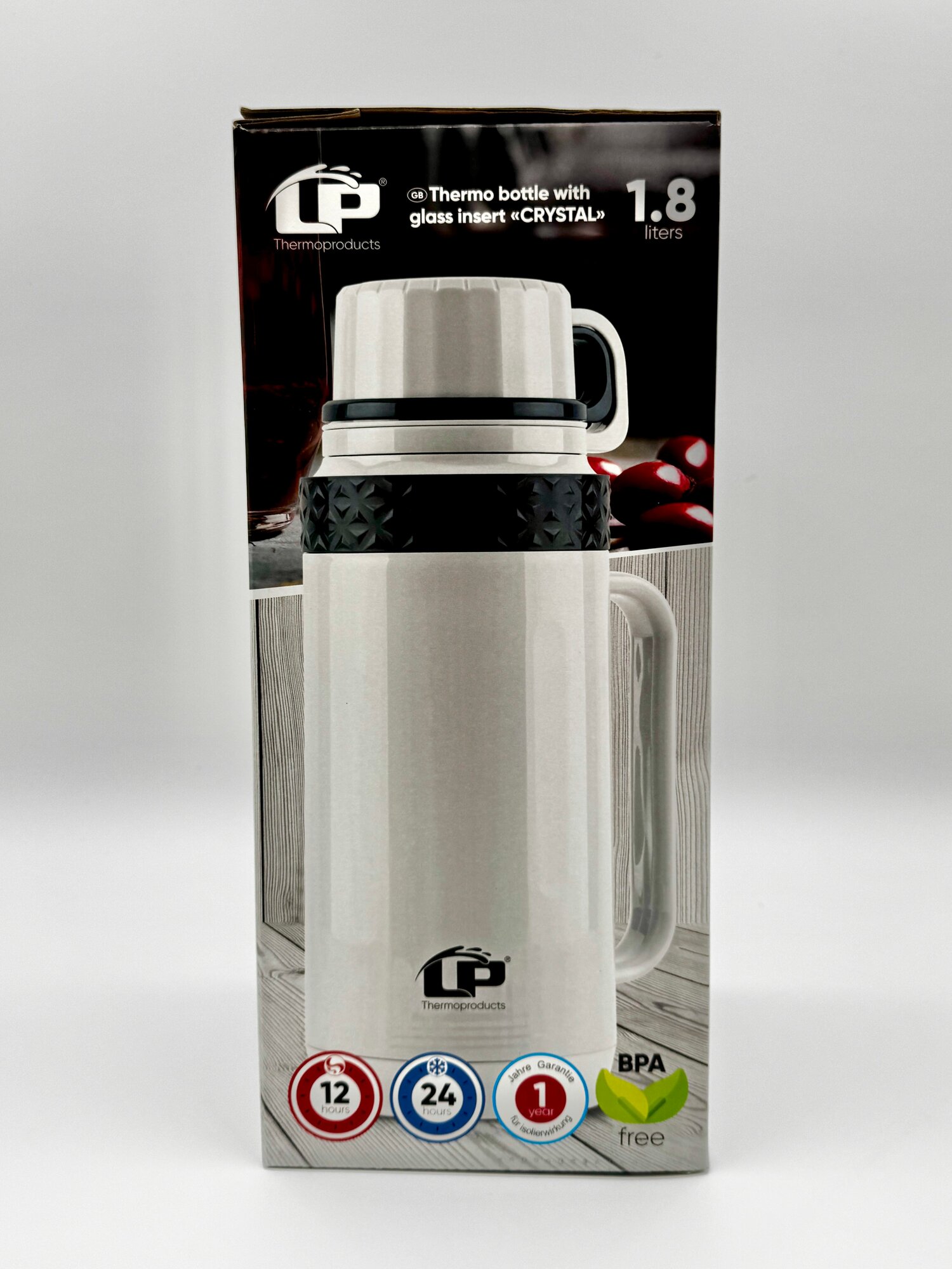 Купить Термос LP CRYSTAL 1,8 литра для чая, кофе со стеклянной колбой и с двумя чашками с доставкой по всей России.