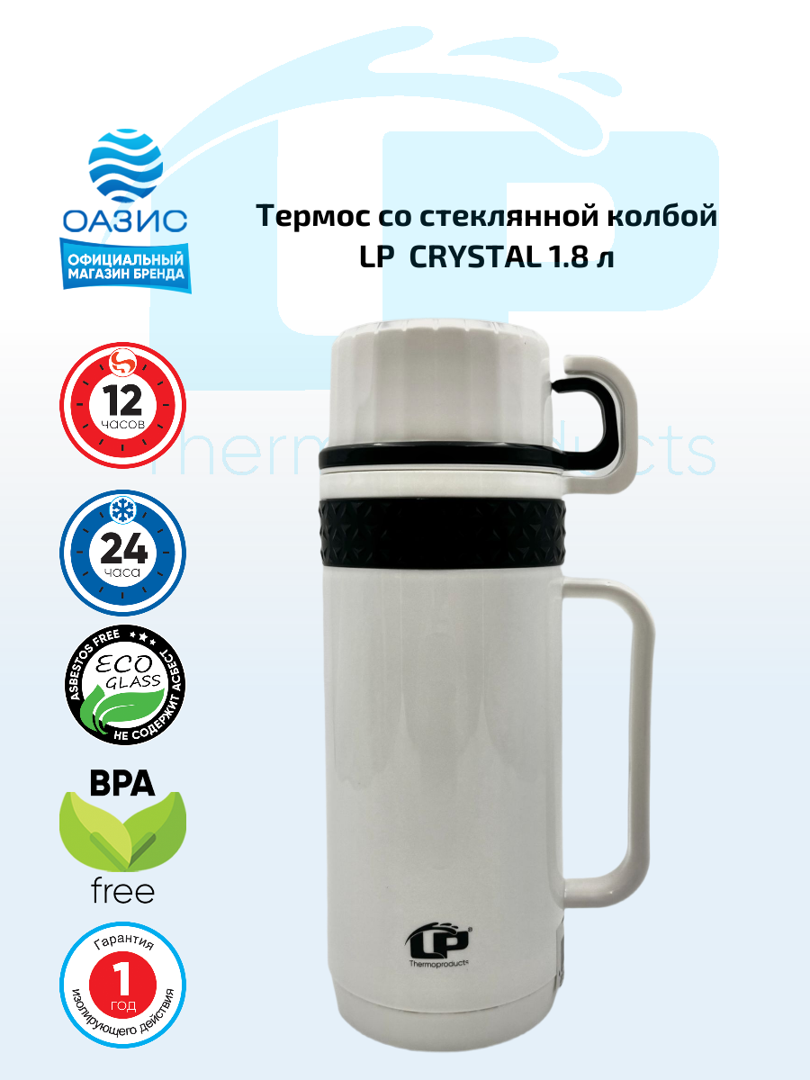 Термос LP CRYSTAL 1,8 литра для чая, кофе со стеклянной колбой и с двумя чашками: сравнение цен, характеристики, фото, актуальное наличие и цены.