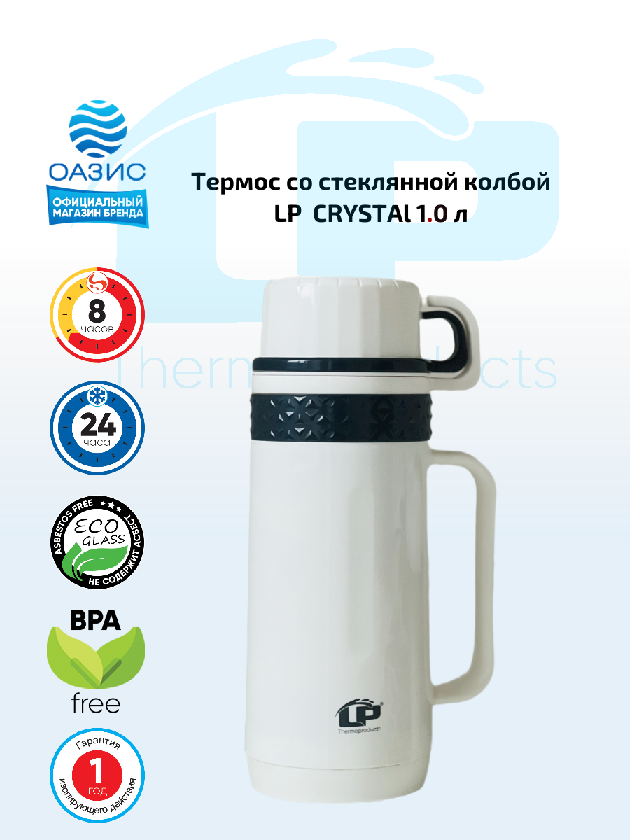 Термос LP CRYSTAL 1л, для чая или кофе, со стеклянной колбой и с двумя чашками.: сравнение цен, характеристики, фото, актуальное наличие и цены.