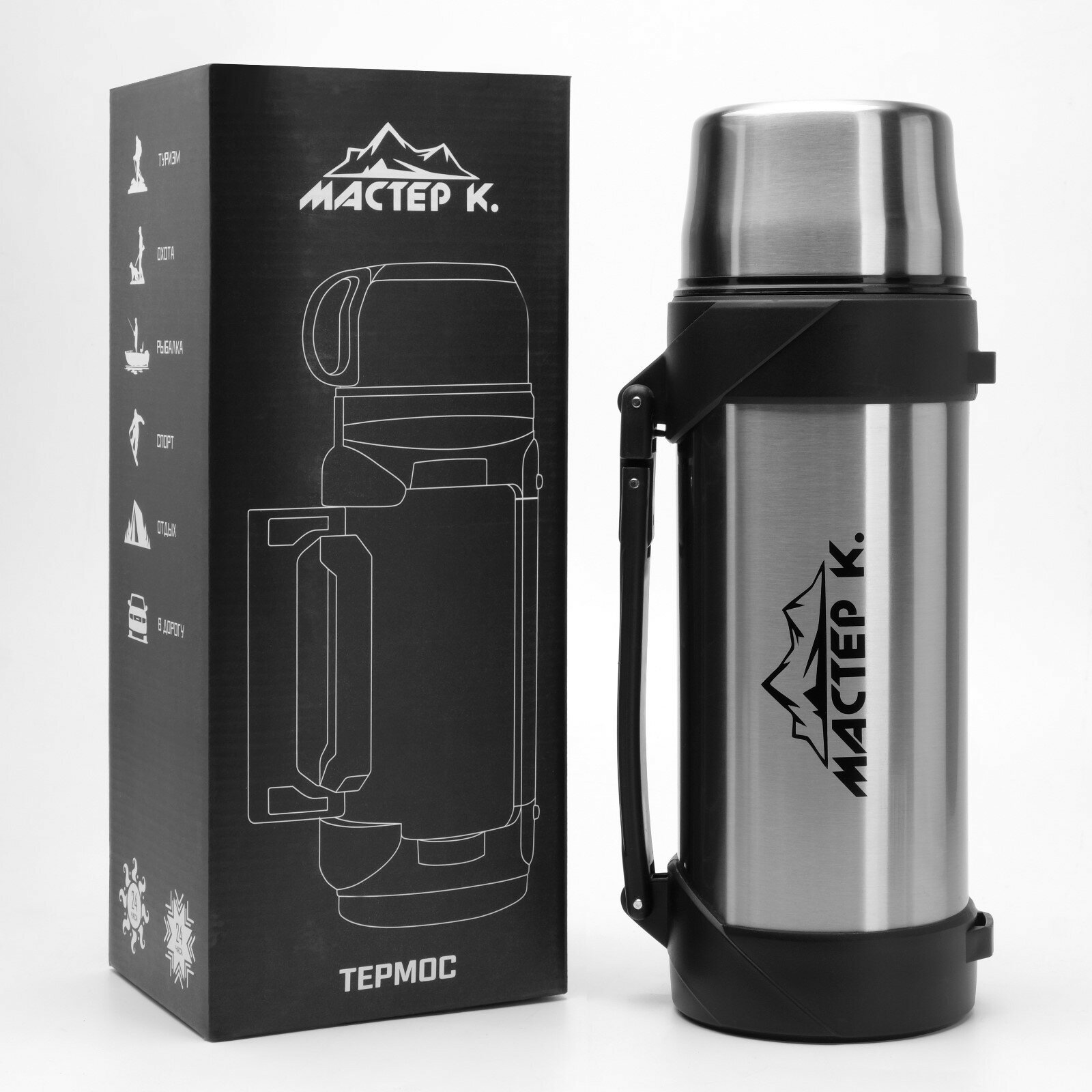 Термос Мастер К «Тропа», 31.5×12 см, с кружкой, сохраняет тепло 24 ч, нержавеющая сталь, цвет хром: сравнение цен, характеристики, фото, актуальное наличие и цены.