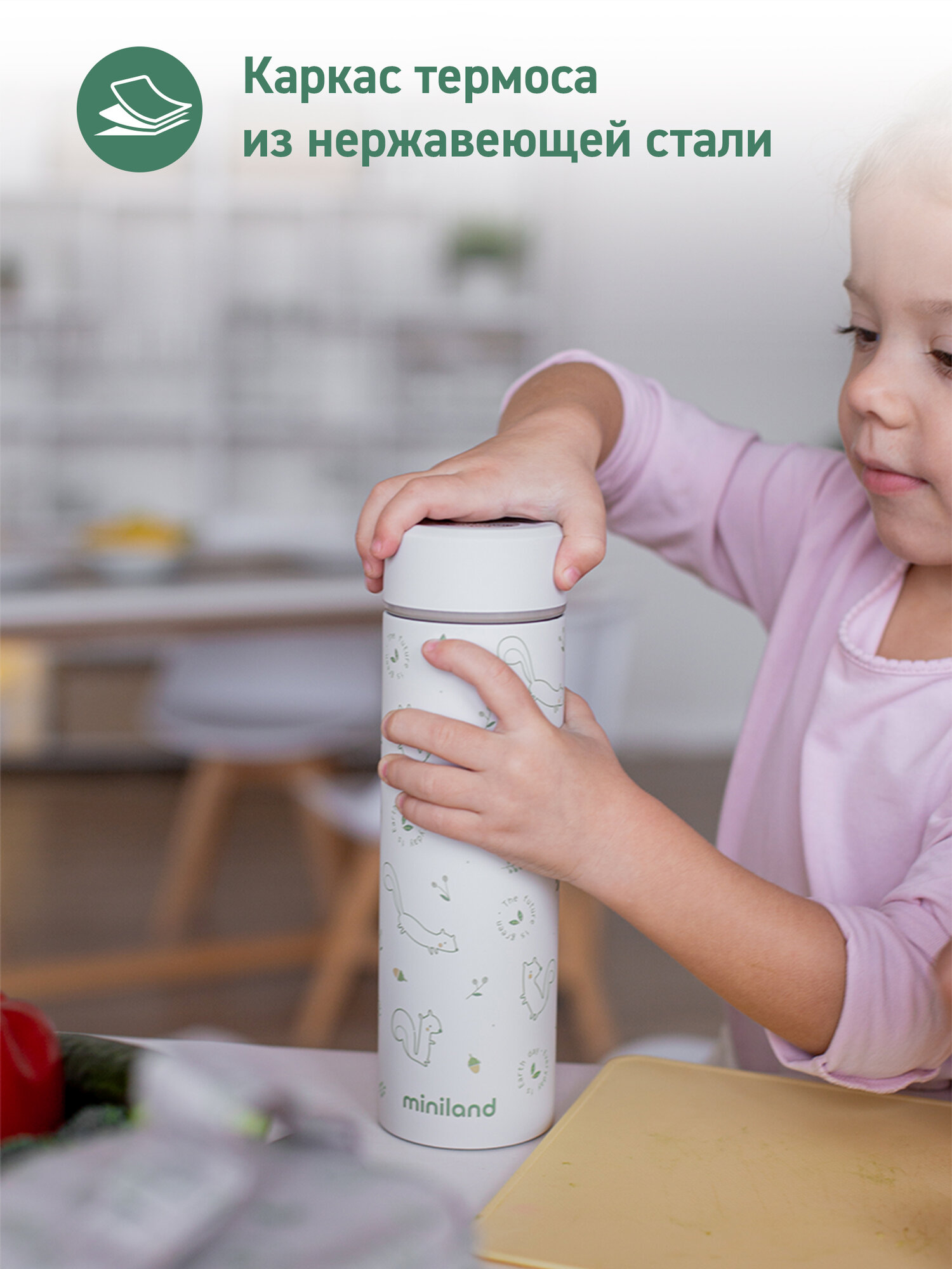 Термос детский для воды, чая и других напитков Miniland Natur Thermos Chip, бежевый с бурундуками, 450 мл: сравнение цен, характеристики, фото, актуальное наличие и цены.