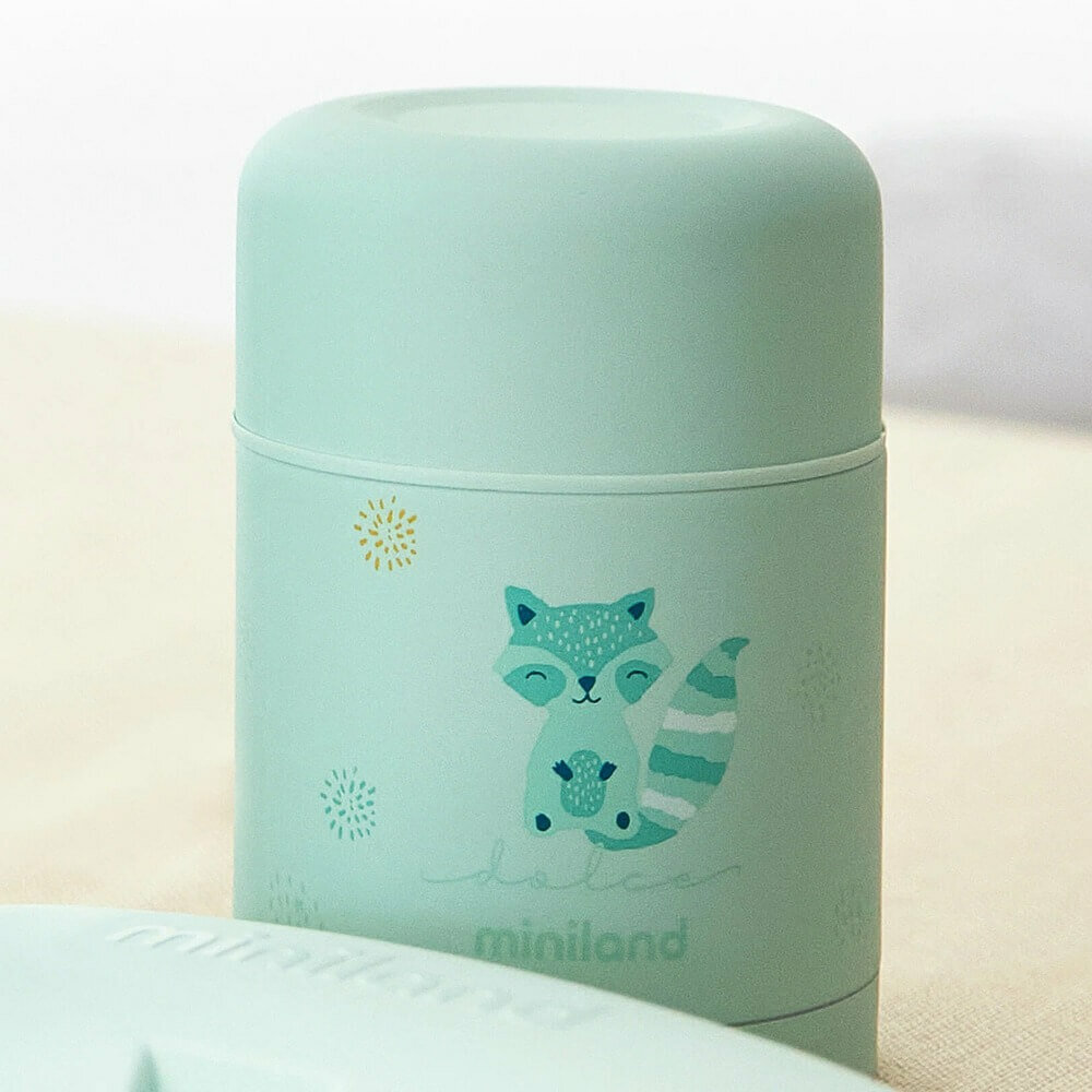 Термос детский для еды Miniland Thermy Dolce, с широким горлом, бирюзовый с енотом, 600 мл: сравнение цен, характеристики, фото, актуальное наличие и цены.