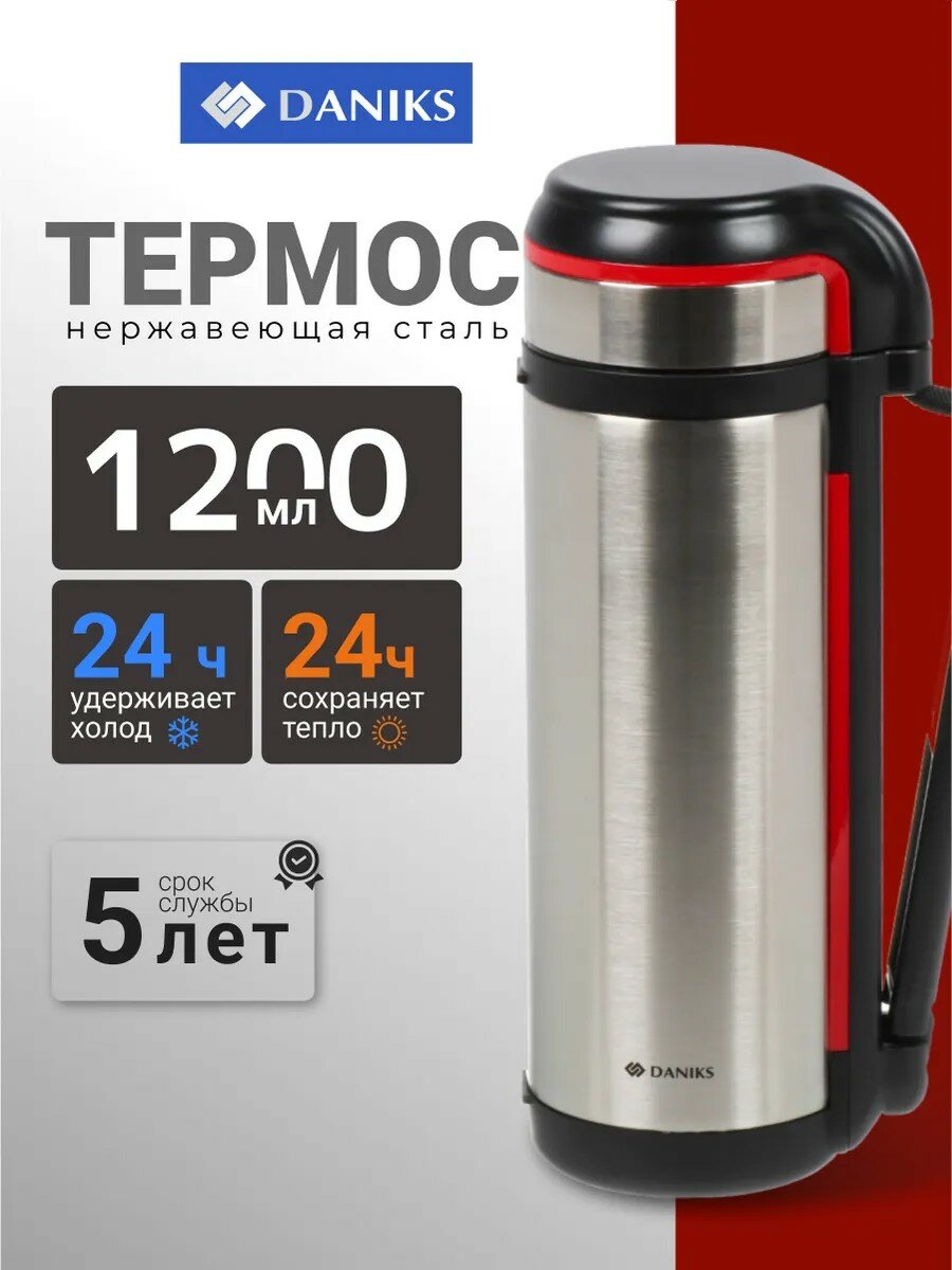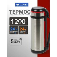 Купить Термос нержавеющая сталь, 1.2 л, универсальная горловина, Daniks, колба нержавеющая сталь, SL-120GH с доставкой по всей России.