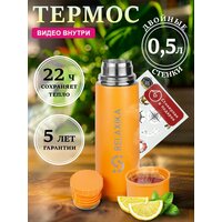 Классический термос Relaxika с высокими показателями удержания температуры напитка для походов, путешествий, спорта и ежедневного использования. Прочные двойные стенки из высококачественной нержавеющей стали 18/8 с вакуумной изоляцией гарантируют, что ваш напиток останется холодным в течение 28 часов и горячим до 22 часов. Этот материал не только прочен, но и гигиеничен, не выделяет никаких вредных для здоровья веществ. Ваши напитки сохраняет естественный вкус и не приобретут посторонний запах.