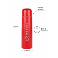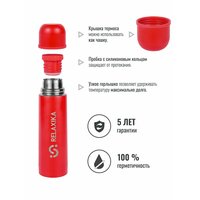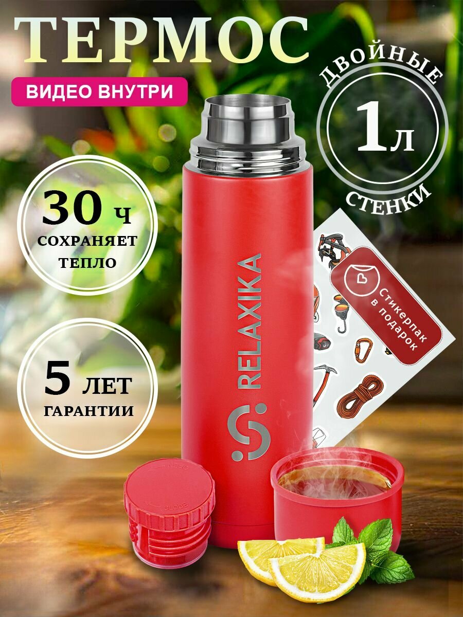 Классический термос Relaxika с высокими показателями удержания температуры напитка для походов, путешествий, спорта и ежедневного использования. Прочные двойные стенки из высококачественной нержавеющей стали 18/8 с вакуумной изоляцией гарантируют, что ваш напиток останется холодным в течение 36 часов и горячим до 30 часов. Этот материал не только прочен, но и гигиеничен, не выделяет никаких вредных для здоровья веществ. Ваши напитки сохраняет естественный вкус и не приобретут посторонний запах.