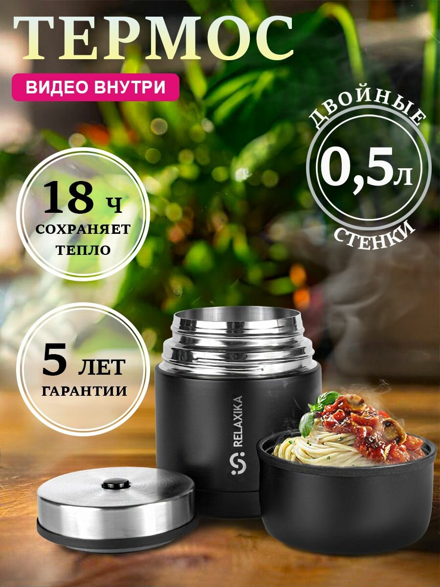 Термос Релаксика Relaxika с широким горлом для еды (0,5 литра), черный, R301.500.2 *: сравнение цен, характеристики, фото, актуальное наличие и цены.