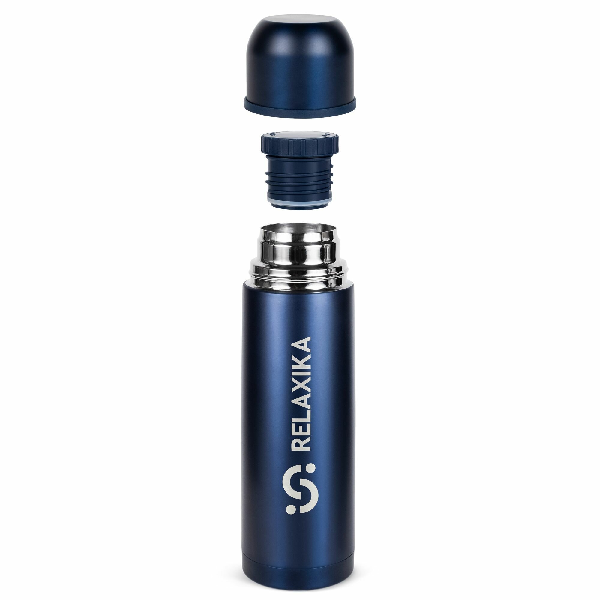 Классический термос Relaxika с высокими показателями удержания температуры напитка для походов, путешествий, спорта и ежедневного использования. Прочные двойные стенки из высококачественной нержавеющей стали 18/8 с вакуумной изоляцией гарантируют, что ваш напиток останется холодным в течение 36 часов и горячим до 30 часов. Этот материал не только прочен, но и гигиеничен, не выделяет никаких вредных для здоровья веществ. Ваши напитки сохраняет естественный вкус и не приобретут посторонний запах.