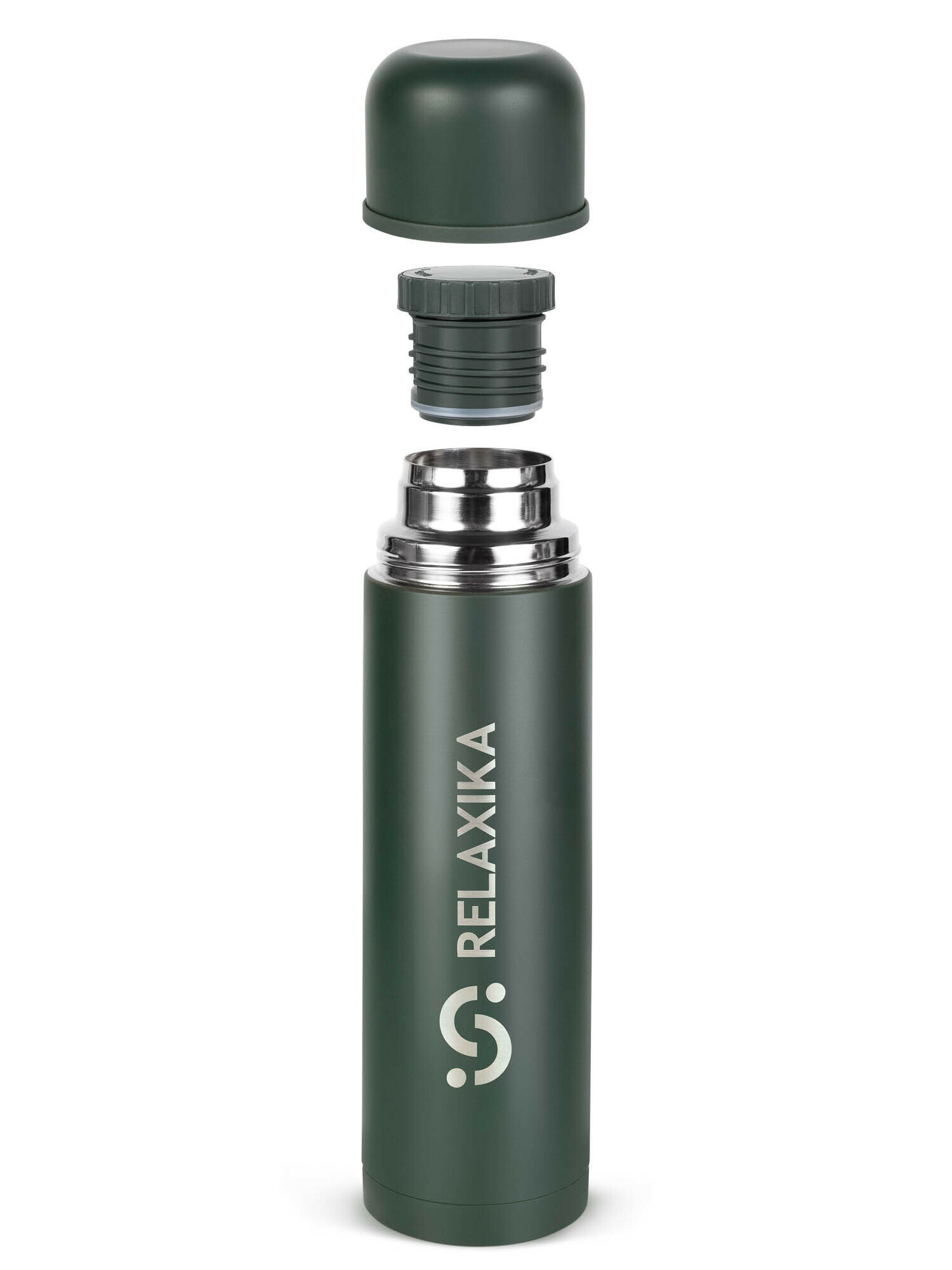Термос Relaxika 101 (1 литр), хаки (стикерпак «Кемпинг»)