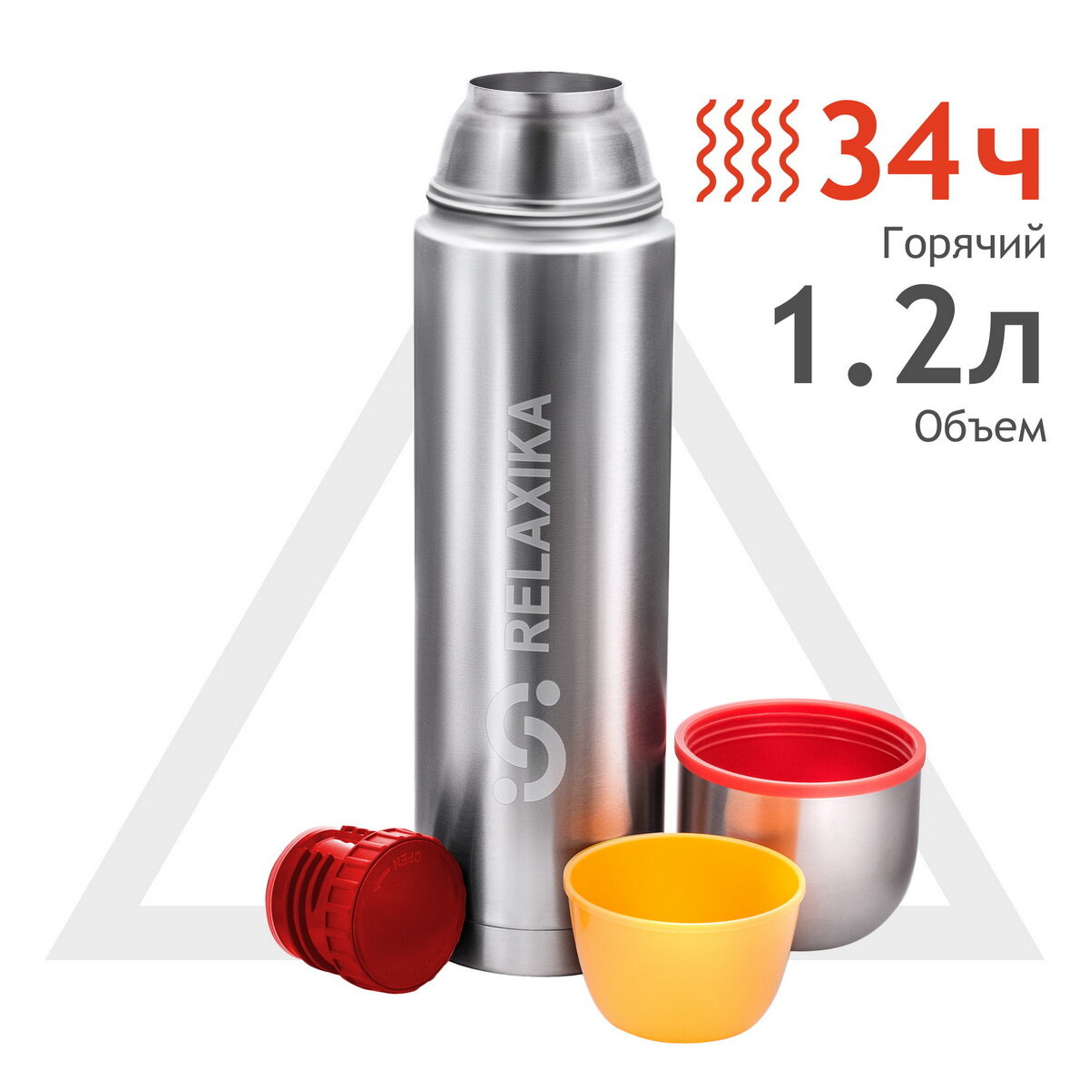 Термос Relaxika 102 (1,2 литра), 2 чашки, стальной: сравнение цен, характеристики, фото, актуальное наличие и цены.