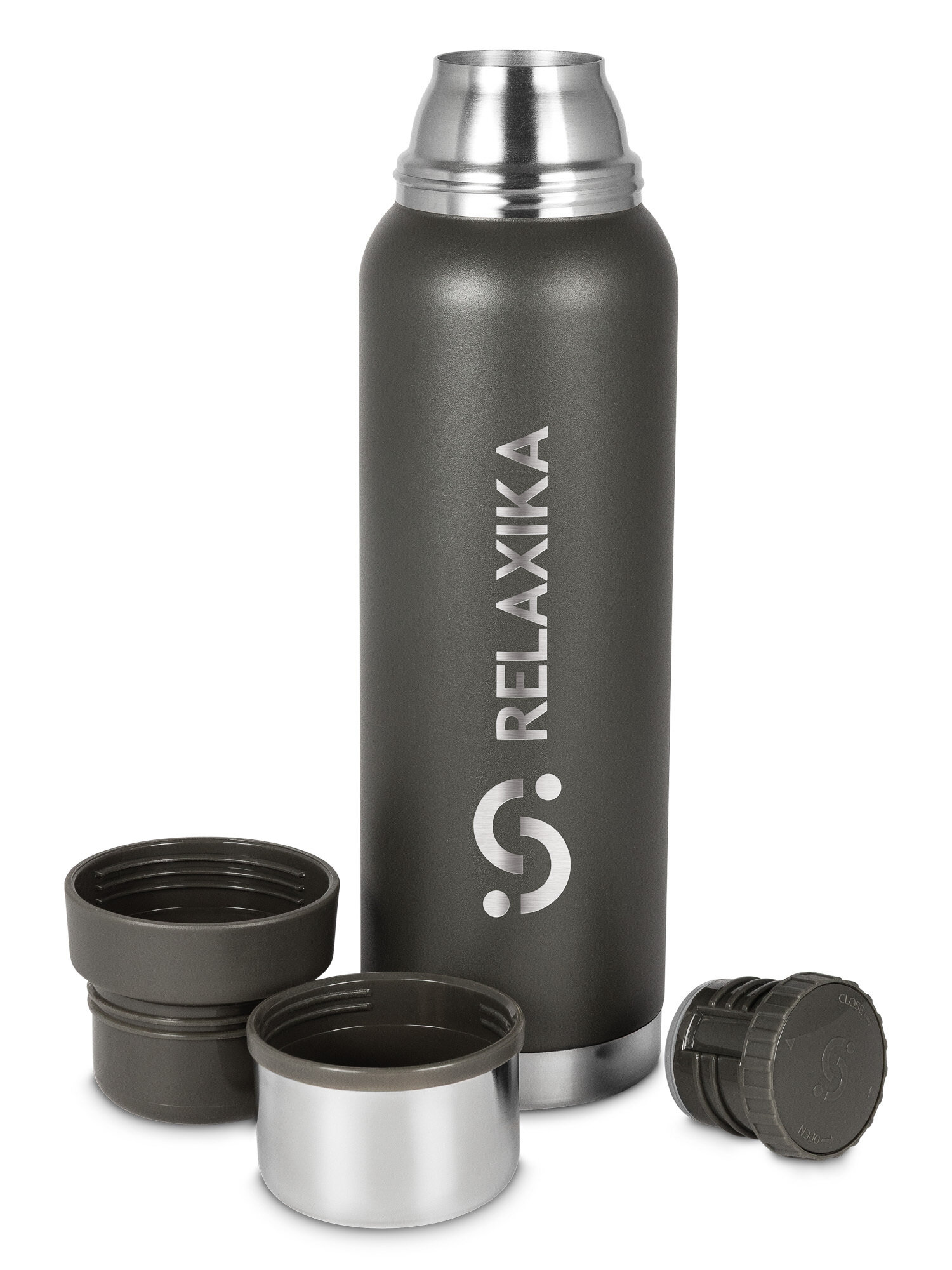 Термос Relaxika 103 (1 литр), хаки (стикерпак «Джиппинг»)