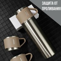 Термос с кружками, подарочный набор, 3 кружки в подарок, тепло до 24 часов, цвет бежевый: сравнение цен, характеристики, фото, актуальное наличие и цены.