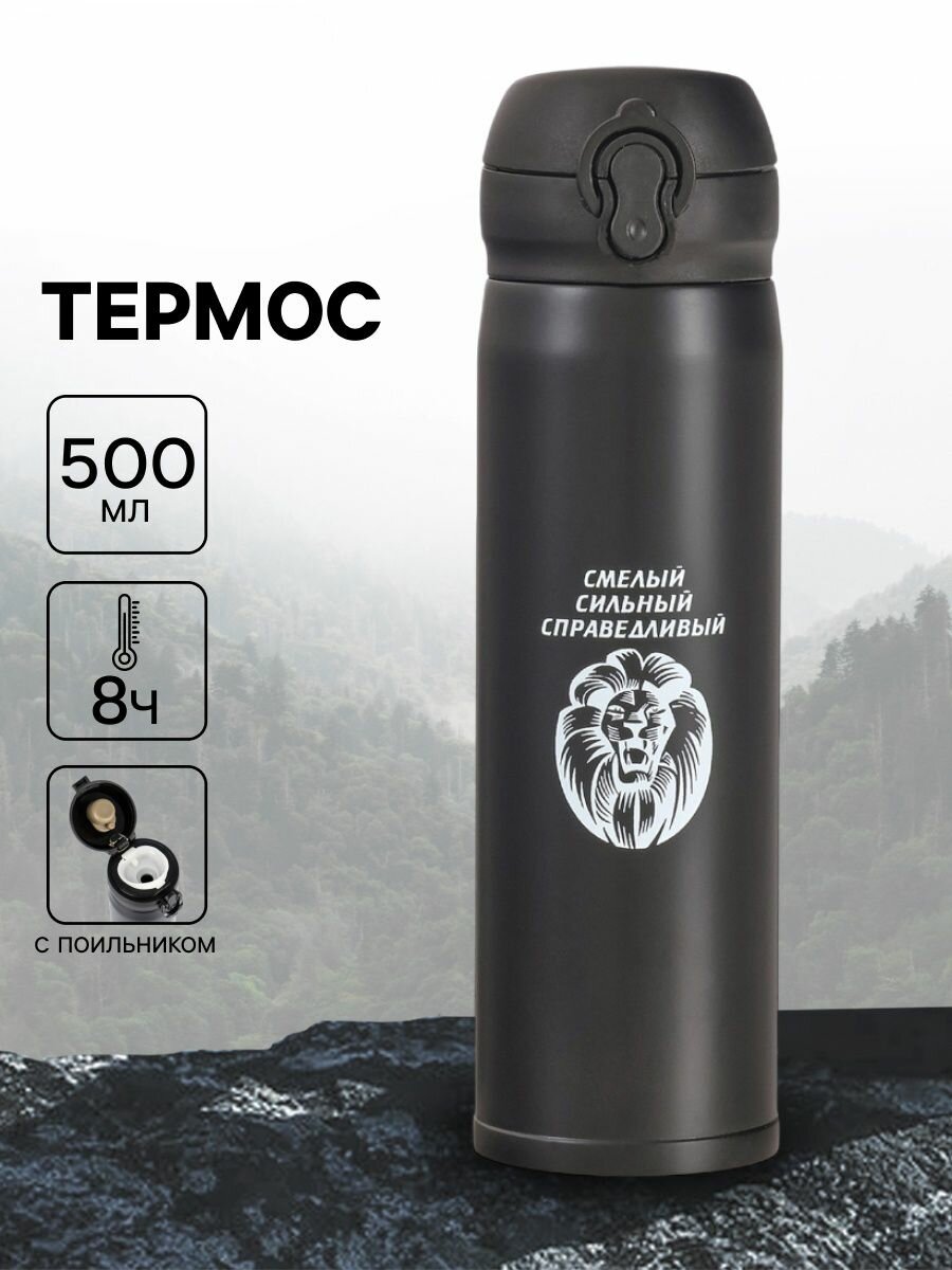 Купить Термос с поильником «Лев», объем 500 мл, термобутылка для кофе и чая, сохраняет тепло до 8 ч, цвет черный с доставкой по всей России. Термос с поильником «Лев», объем 500 мл, термобутылка для кофе и чая, сохраняет тепло до 8 ч, цвет черный: сравнение цен, характеристики, фото, актуальное наличие и цены.