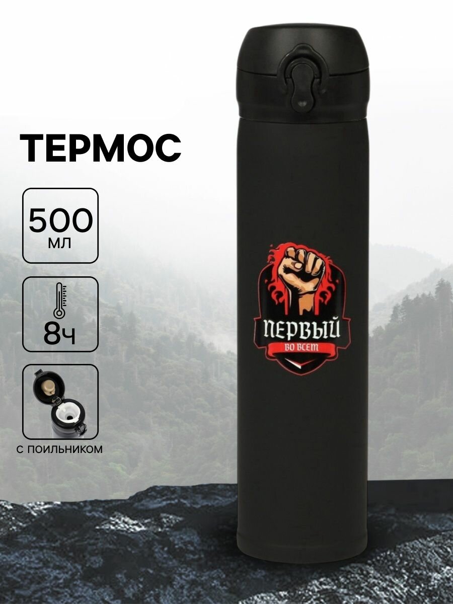 Купить Термос с поильником «Первый во всем», объем 500 мл, термобутылка для кофе и чая, сохраняет тепло до 8 ч, цвет черный с доставкой по всей России. Термос с поильником «Первый во всем», объем 500 мл, термобутылка для кофе и чая, сохраняет тепло до 8 ч, цвет черный: сравнение цен, характеристики, фото, актуальное наличие и цены.