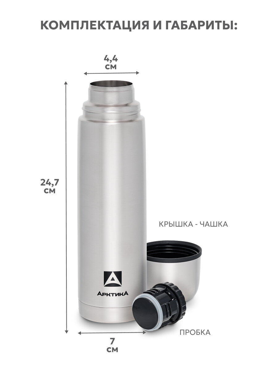 Термос Арктика изготовлен из качественной пищевой нержавеющей стали, что делает его надежным и безопасным для здоровья. Этот термос станет отличным подарком для мужчины или подруги, а также практичным решением для детей, чтобы всегда иметь под рукой свой любимый напиток.