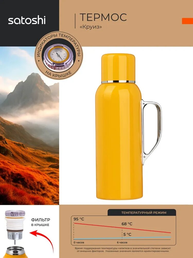 Термос SATOSHI Круиз, 800 мл, для чая, кофе, напитков, с датчиком температуры, ручка на корпусе: сравнение цен, характеристики, фото, актуальное наличие и цены.