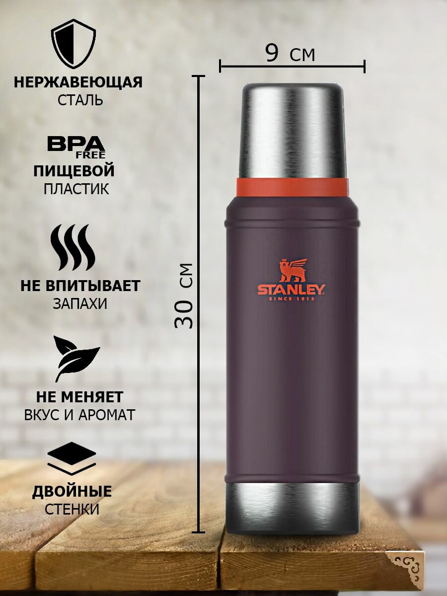 Термос Stanley Classic для чая и кофе (0,75 литра), бордовый, 10-01612-064: сравнение цен, характеристики, фото, актуальное наличие и цены.