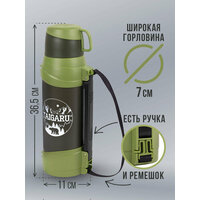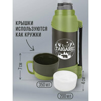 Купить Термос классический, нержавеющая сталь, 2 л, черно-оливковый, 2 кружки, ручка + ремешок, Taigaru (Тайгару), 608816 с доставкой по всей России.