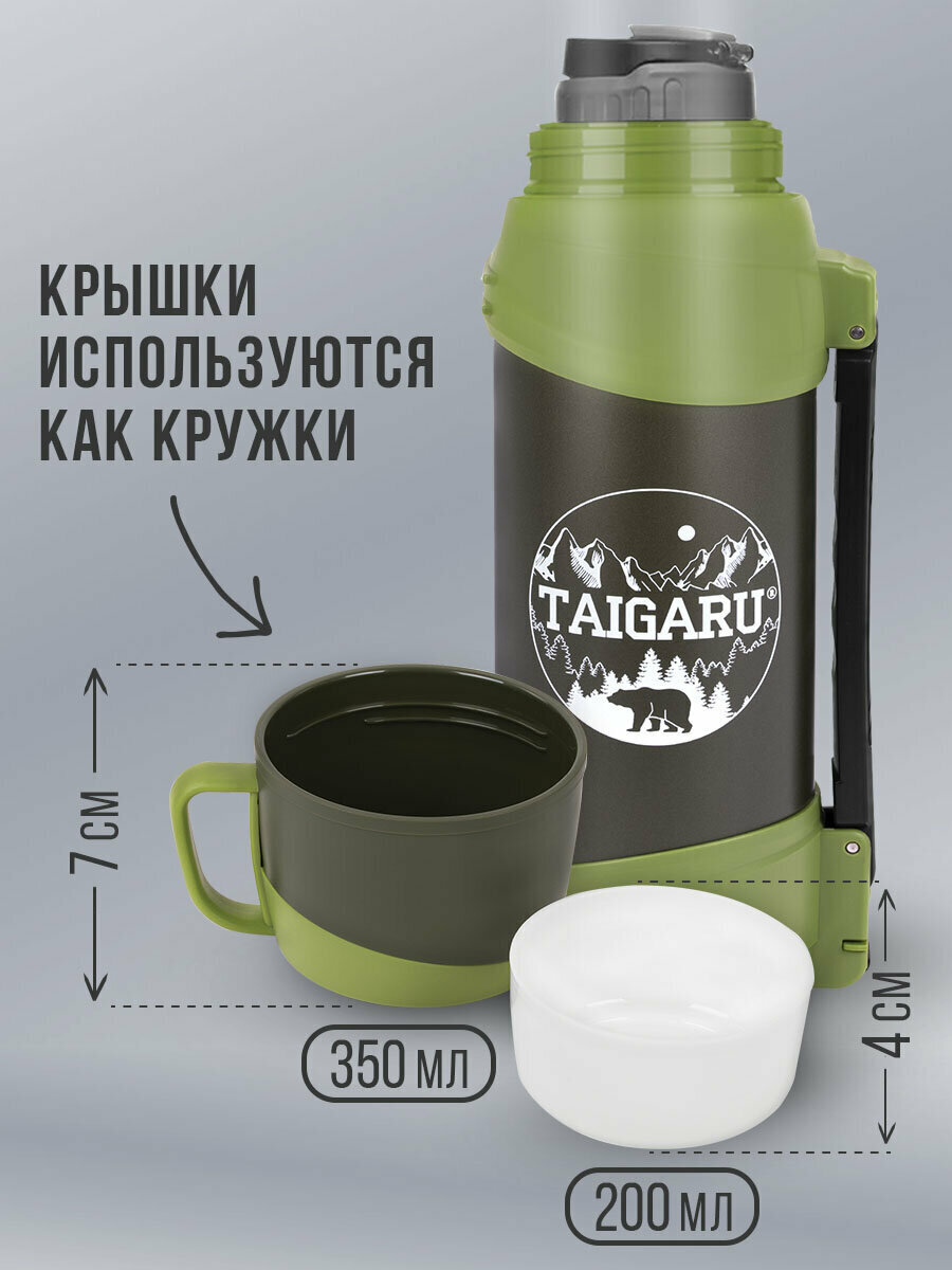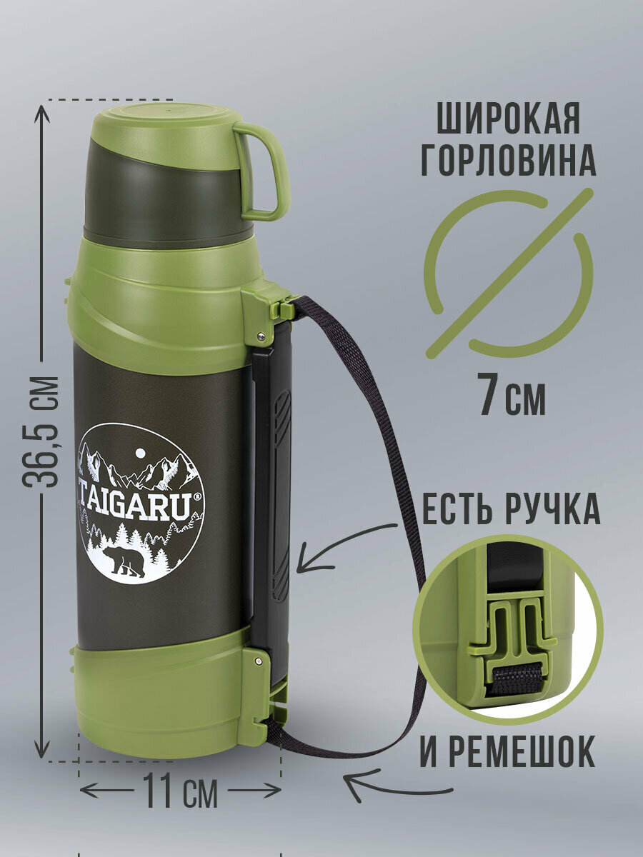 Термос классический, нержавеющая сталь, 2 л, черно-оливковый, 2 кружки, ручка + ремешок, Taigaru (Тайгару), 608816: сравнение цен, характеристики, фото, актуальное наличие и цены.