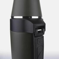 Термос имеет стандартную горловину, что обеспечивает удобство наливания и возможность использования комплементарных аксессуаров, таких как кружки и фильтры (не входящие в комплект). Клапан в крышке позволяет контролировать поток жидкости и предотвращает проливание, что очень удобно в дороге или на пикнике.