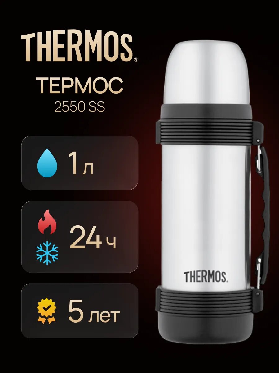 Термос Thermos 2550 на 1,2 л с ручкой, стальной, до 24 часов сохранение холода/тепла: сравнение цен, характеристики, фото, актуальное наличие и цены.