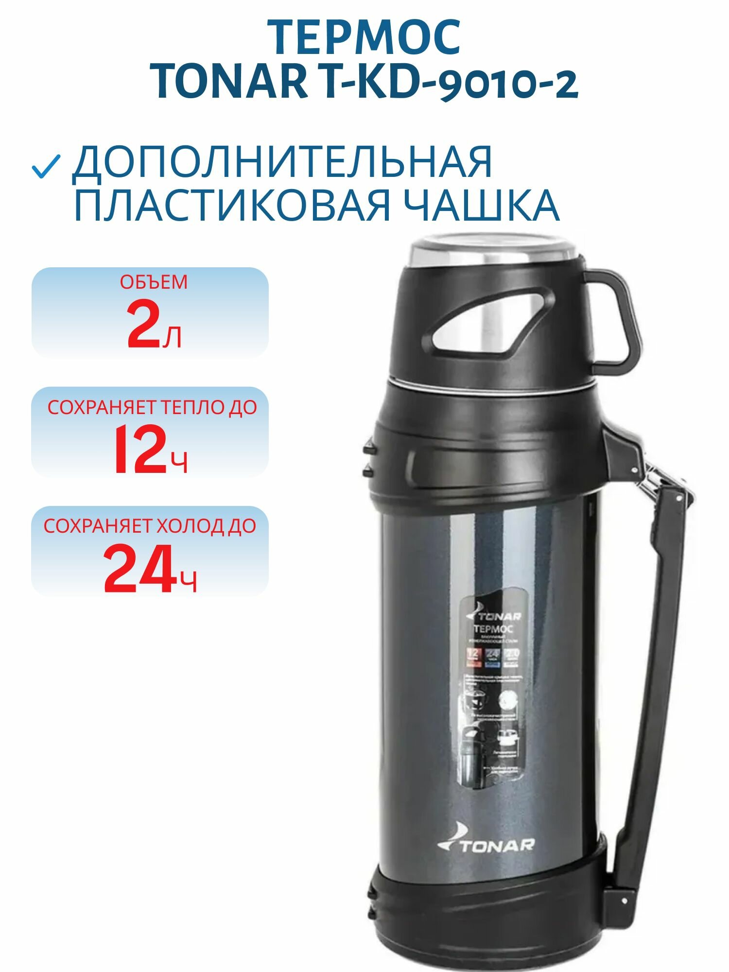 Термос TONAR T-KD-9010-2, 2000 мл, синий, (крышка-кружка, доп. пл. чашка, ручка): сравнение цен, характеристики, фото, актуальное наличие и цены.