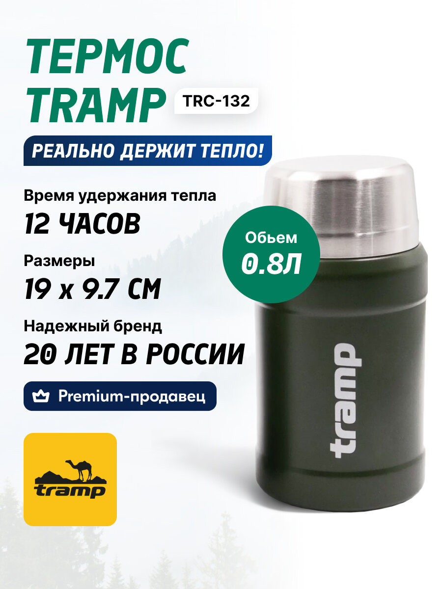 Термос Tramp TRC-132, для еды, с сумкой, нержавеющая сталь, оливковый, 0.8 л: сравнение цен, характеристики, фото, актуальное наличие и цены.