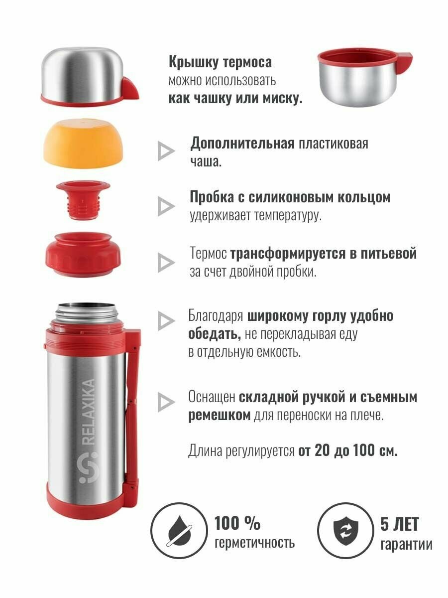 Купить Термос универсальный (для еды и напитков) Relaxika 201 (2 литра), стальной с доставкой по всей России.