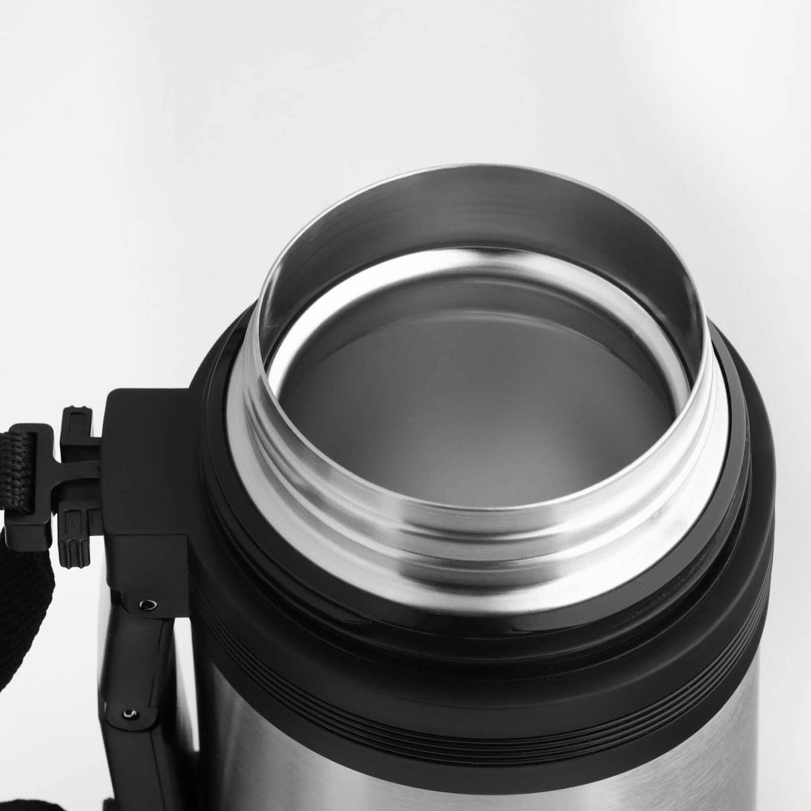 В чем же особенность такого термоса спросите вы? Во-первых, колба и корпус выполнены из нержавеющей стали марки 18/8. Во-вторых, модель станет незаменимой не только для хранения напитков, а также для еды, так как имеет увеличенный диаметр горловины. В-третьих, практичная пробка состоит из двух частей: узкая внутренняя пригодится, когда термос наполнен напитком. Более широкая часть — сделает комфортным накладывание и доставание твёрдой пищи. Такие свойства помогают без проблем ухаживать посудой после эксплуатации.