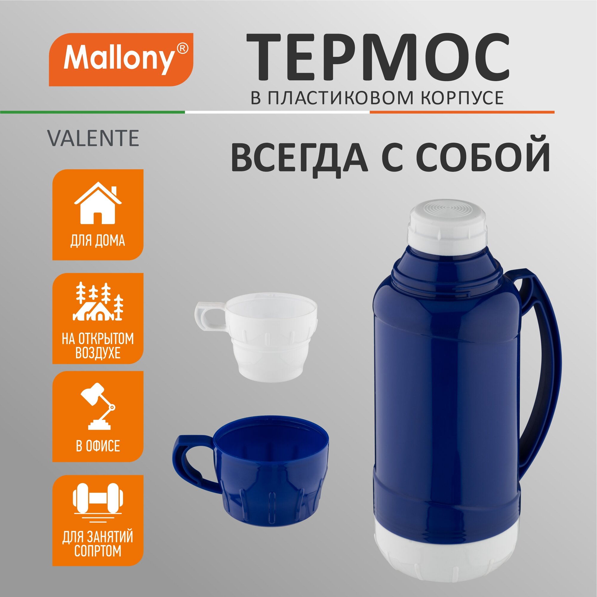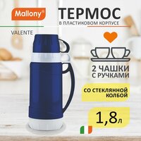 Купить Термос в пластиковом корпусе со стеклянной колбой Mallony Valente, 2 чашки, 1.8 литра с доставкой по всей России.