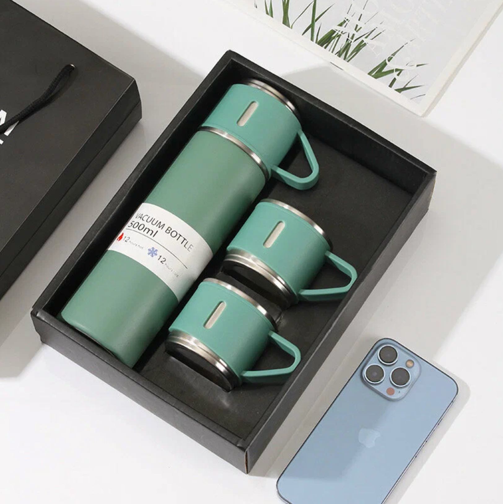Термос вакуумный с тремя кружками - подарочный термос набор, который идеально подходит для любителей горячих напитков в пути или в походе. Этот набор включает в себя высококачественный вакуумный термос, изготовленный из прочной нержавеющей стали, а также три удобные кружки. Основные особенности этого термоса: 1. Превосходная изоляция: благодаря двойным стенкам с вакуумным пространством, этот термос обеспечивает отличную теплоизоляцию, сохраняя горячие напитки горячими до 12 часов и холодные напитки прохладными до 24 часов. 2. Прочный и надежный: изготовленный из высококачественной нержавеющей стали, этот термос стойкий к ударам и коррозии, что делает его идеальным для активного использования на природе. 3. Удобство использования: компактный размер и легкий вес делают этот термос идеальным спутником для поездок или походов. Он легко помещается в сумку или рюкзак, не занимая много места. 4. В комплекте с тремя кружками: этот набор включает в себя три удобные кружки, что позволяет наслаждаться горячим напитком в компании друзей или семьи. 5. Стильный дизайн: элегантный и современный дизайн этого термоса добавляет стиль и изысканность в вашу повседневную жизнь. Не важно, отправляетесь ли вы в поход, на пикник или просто нуждаетесь в надежном способе сохранить свой напиток горячим или холодным в течение длительного времени, термос вакуумный с тремя кружками - подарочный термос набор является идеальным выбором для вас.